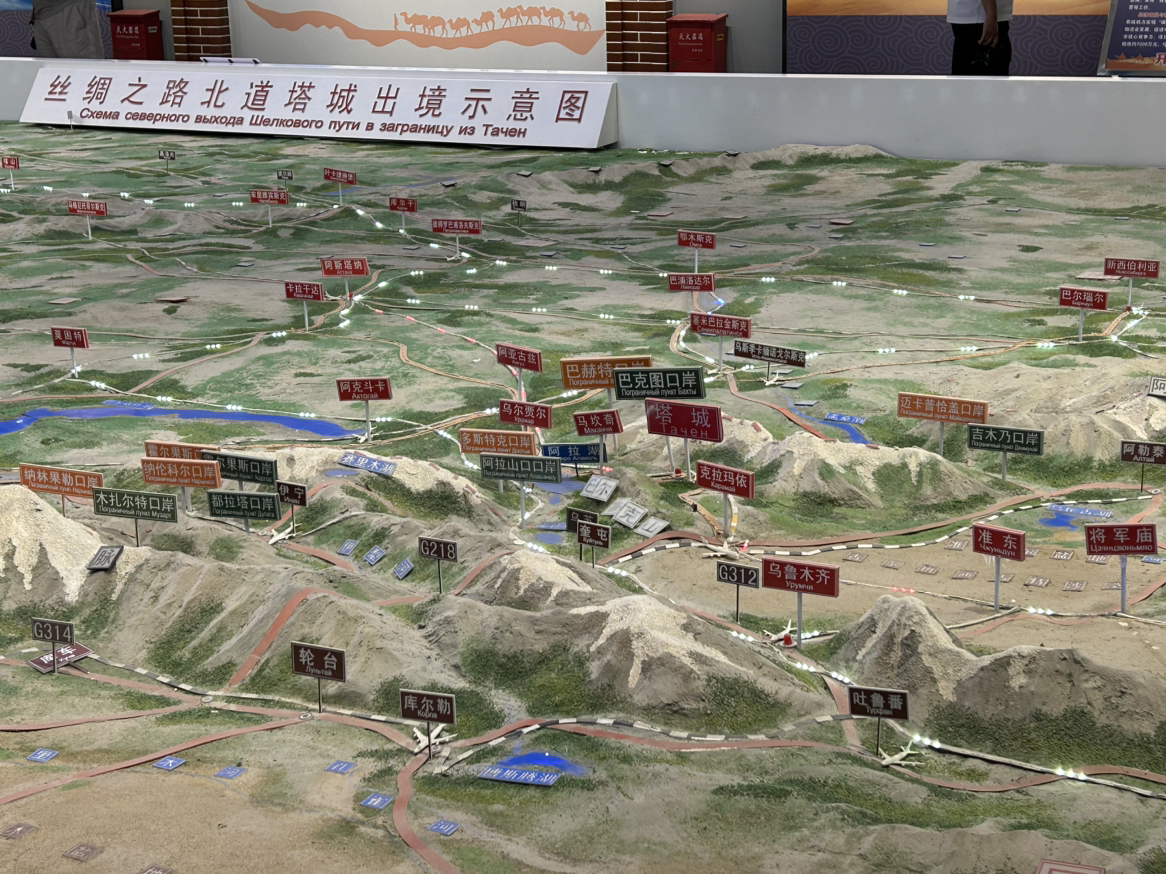 在巴克圖口岸文化展示館,解說員趙倩指著一張乾隆年間的易貨貿(mào)易圖介紹:“從1764年民間駝隊(duì)往來,到1854年正式通商,這里始終是亞歐大陸重要的貿(mào)易走廊?!别^內(nèi)沙盤清晰呈現(xiàn)“一核、兩廊、三區(qū)”新布局,2025年上半年數(shù)據(jù)顯示,口岸出入境人員同比增長(zhǎng)167.82%,通關(guān)時(shí)間較往年縮短40%。“現(xiàn)在的司機(jī)用手機(jī)APP就能完成申報(bào),邊民互市‘整進(jìn)整出’模式讓貿(mào)易更高效?!壁w倩說道。