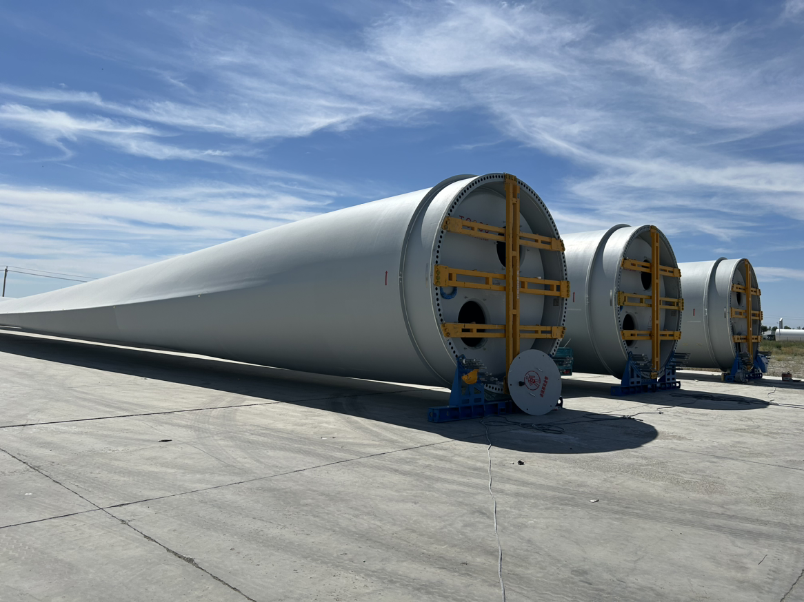 距口岸8公里的塔城重點(diǎn)開發(fā)開放試驗(yàn)區(qū)建設(shè)現(xiàn)場(chǎng),三一風(fēng)電的巨型葉片正等待出口?!拔覀兩a(chǎn)的葉片單只長(zhǎng)度達(dá)112米,重達(dá)41噸,平均每80個(gè)工時(shí)可以生產(chǎn)一只,單只的成本價(jià)在120萬(wàn)左右。目前,我們公司接收著來自世界各地的訂單” ,塔城風(fēng)電設(shè)備有限公司行政事務(wù)專員阿斯哈爾 阿根三一表示。