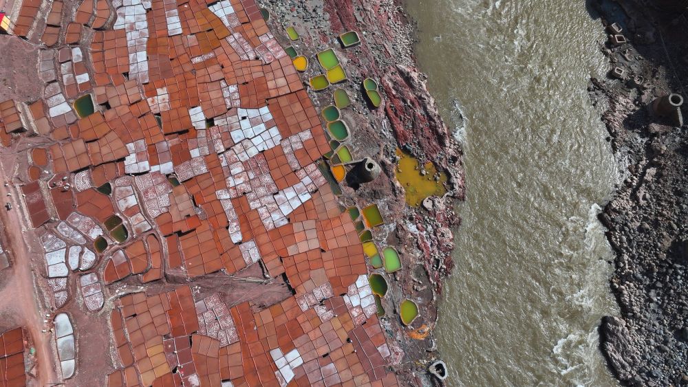 瀾滄江畔的千年鹽田。井鹽曬制技藝被列入國家級非物質(zhì)文化遺產(chǎn)名錄。新華社記者 黨黎 攝
