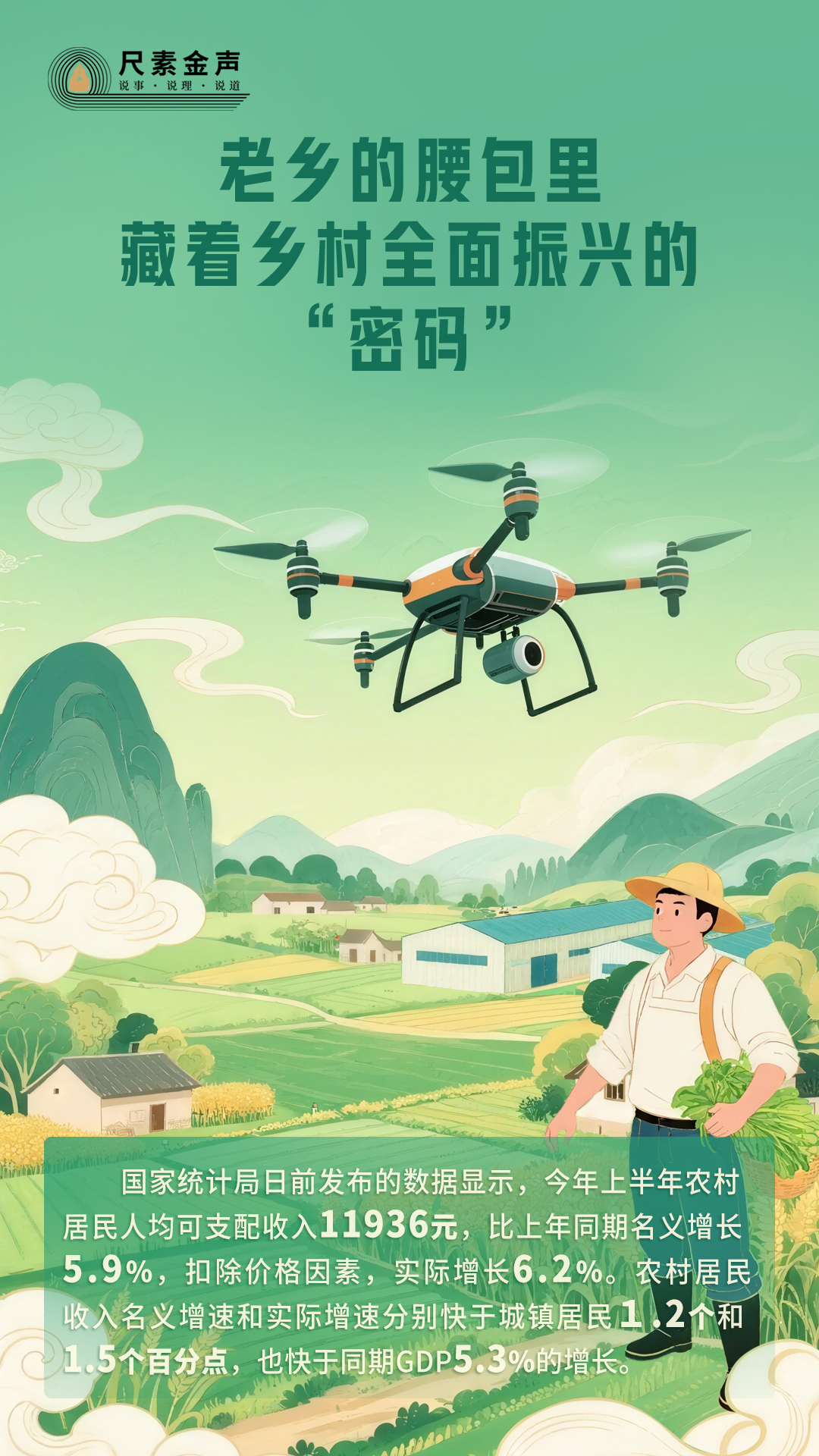 今年上半年農(nóng)民收入數(shù)據(jù)中還有一個值得關(guān)注,就是城鄉(xiāng)居民人均可支配收入之比由上年同期的2.45降至2.42。城鄉(xiāng)融合發(fā)展,要持續(xù)縮小城鄉(xiāng)居民收入差距,關(guān)鍵在于持續(xù)提高農(nóng)村居民收入。推動農(nóng)民收入持續(xù)穩(wěn)定增長,不僅有助于促進共同富裕,也有助于暢通城鄉(xiāng)經(jīng)濟循環(huán)。