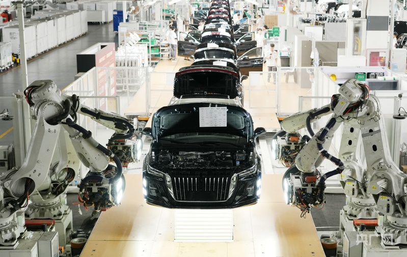 在中國(guó)一汽紅旗繁榮廠區(qū),14條自動(dòng)生產(chǎn)線每天能裝配下線500余輛汽車,這一速度讓這座工廠穩(wěn)居國(guó)內(nèi)汽車制造第一梯隊(duì)。