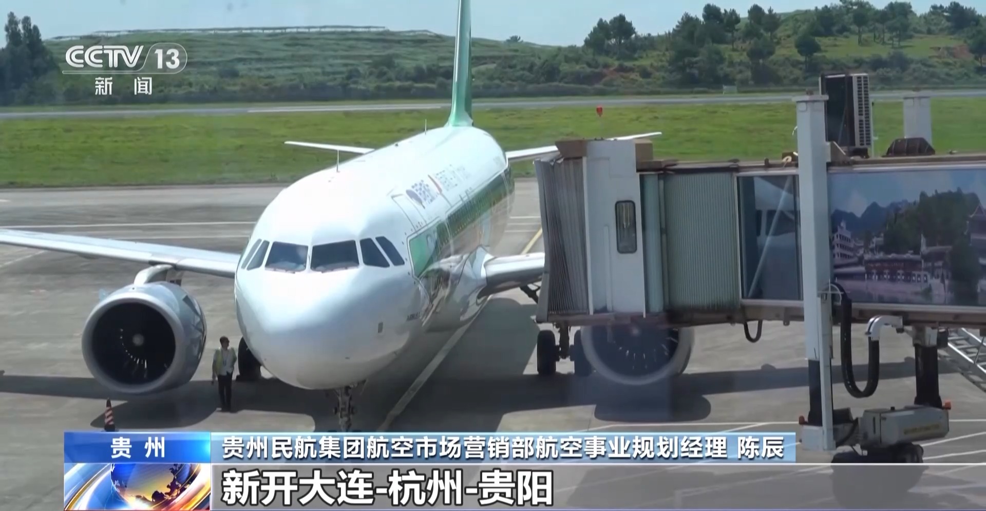 貴州民航集團(tuán)航空市場營銷部航空事業(yè)規(guī)劃經(jīng)理 陳辰:針對暑期旅游旺季,聯(lián)合多家航空公司,新開大連-杭州-貴陽、鄭州-達(dá)州-貴陽、沈陽-貴陽等航線,其中大連-杭州-貴陽航線暑運(yùn)期間客座率超90%。
