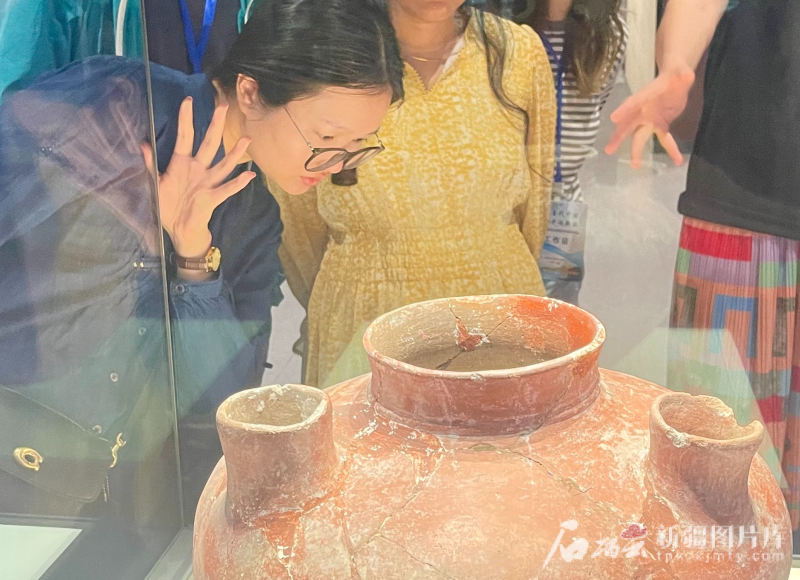 在塔城紅樓博物館,大家在石器時(shí)代文物、歷代器具等展品前,細(xì)細(xì)聆聽講解員講述塔城的歷史脈絡(luò)。