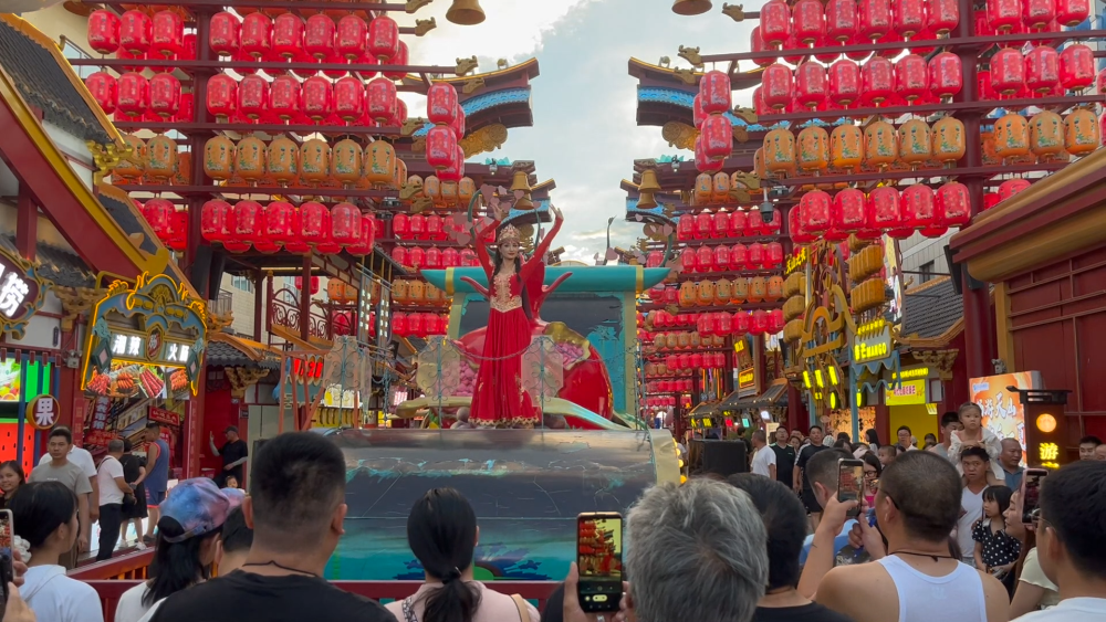 在烏魯木齊市的天山明月城特色街區(qū),這里匯集了餐飲、休閑娛樂(lè)、歌舞演藝等業(yè)態(tài),每天都有各類(lèi)演出活動(dòng),在豐富市民游客文化活動(dòng)的同時(shí),激發(fā)消費(fèi)活力,助力“夜經(jīng)濟(jì)”發(fā)展。