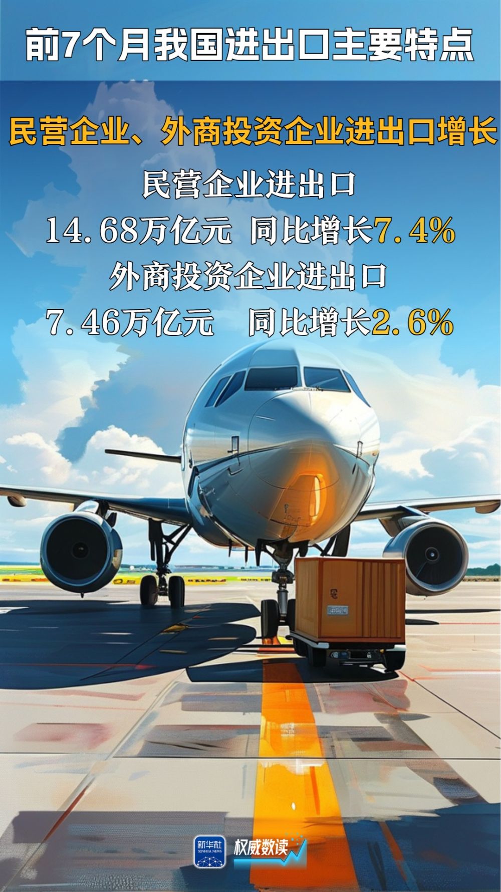 海關(guān)總署7日發(fā)布數(shù)據(jù)顯示,今年前7個月,我國貨物貿(mào)易進(jìn)出口總值25.7萬億元人民幣,同比增長3.5%。面對復(fù)雜外部環(huán)境,我國外貿(mào)運行保持向上向好勢頭,經(jīng)濟運行穩(wěn)中有進(jìn)。