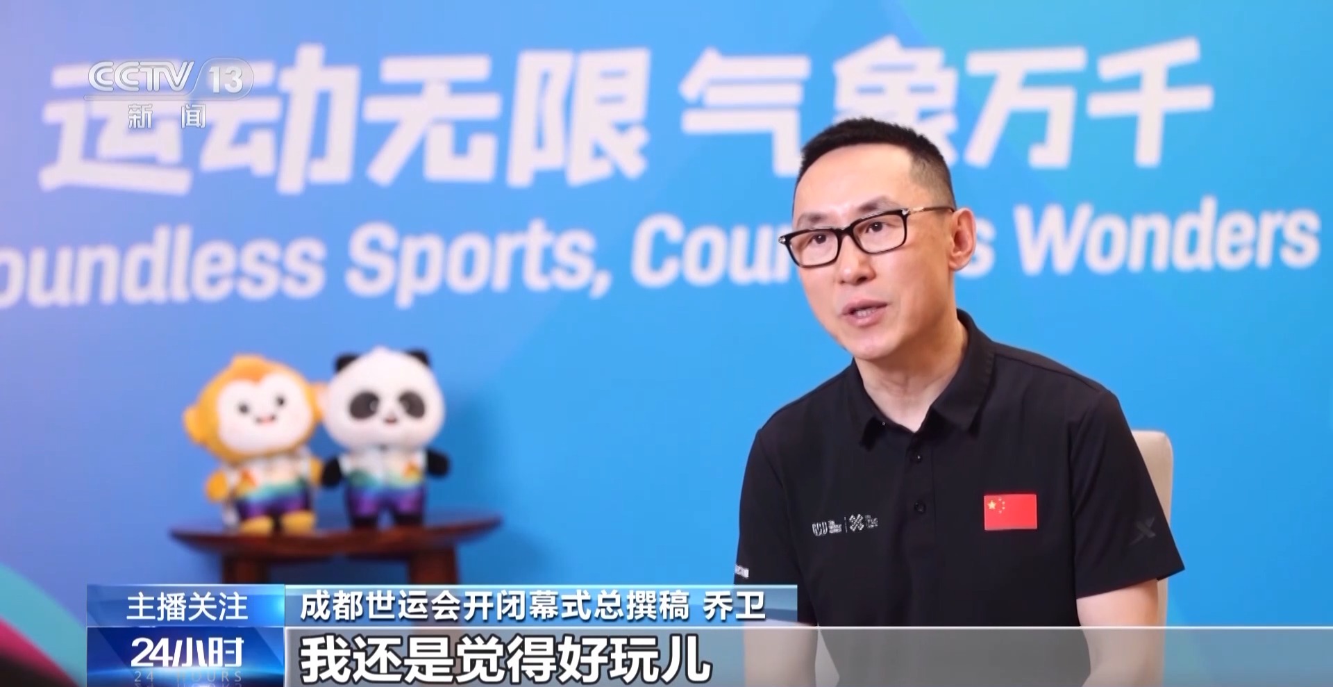 成都世運(yùn)會(huì)開閉幕式總撰稿 喬衛(wèi):如果用一個(gè)詞來概括的話,我覺得好玩兒。希望這一屆世運(yùn)會(huì)的開幕式是好玩兒的。其實(shí)我們不僅僅展現(xiàn)的是體育運(yùn)動(dòng)能夠彰顯生命特質(zhì)的一面,其實(shí)也展現(xiàn)了成都這座城市更活躍、更有創(chuàng)新感、更加有聲趣感的真正風(fēng)貌。