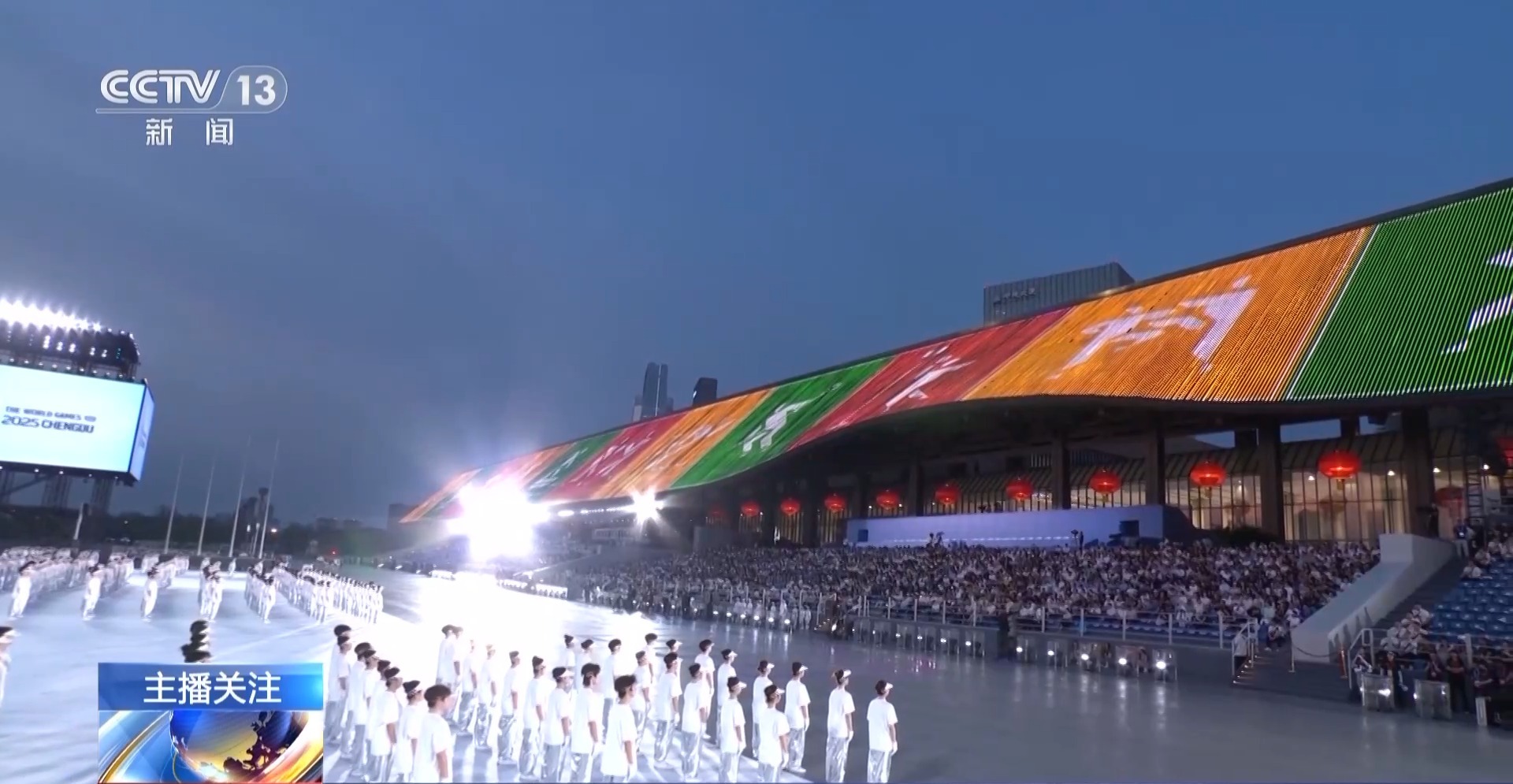成都世運(yùn)會(huì)開閉幕式總制作人 王銳祥:等于那個(gè)舞臺(tái)是180度。以往在一個(gè)體育場館里面的舞臺(tái)有聚焦點(diǎn),但在戶外,基本上人所看到的舞臺(tái)層面,都要表達(dá),所以這個(gè)是考驗(yàn)我們導(dǎo)演、舞美、燈光師在聚焦點(diǎn),怎么把我們的觀眾拉回這個(gè)舞臺(tái)上。如果沒有一個(gè)很強(qiáng)烈的細(xì)節(jié)感受,沒有辦法把觀眾的細(xì)節(jié)拉回中心舞臺(tái)。