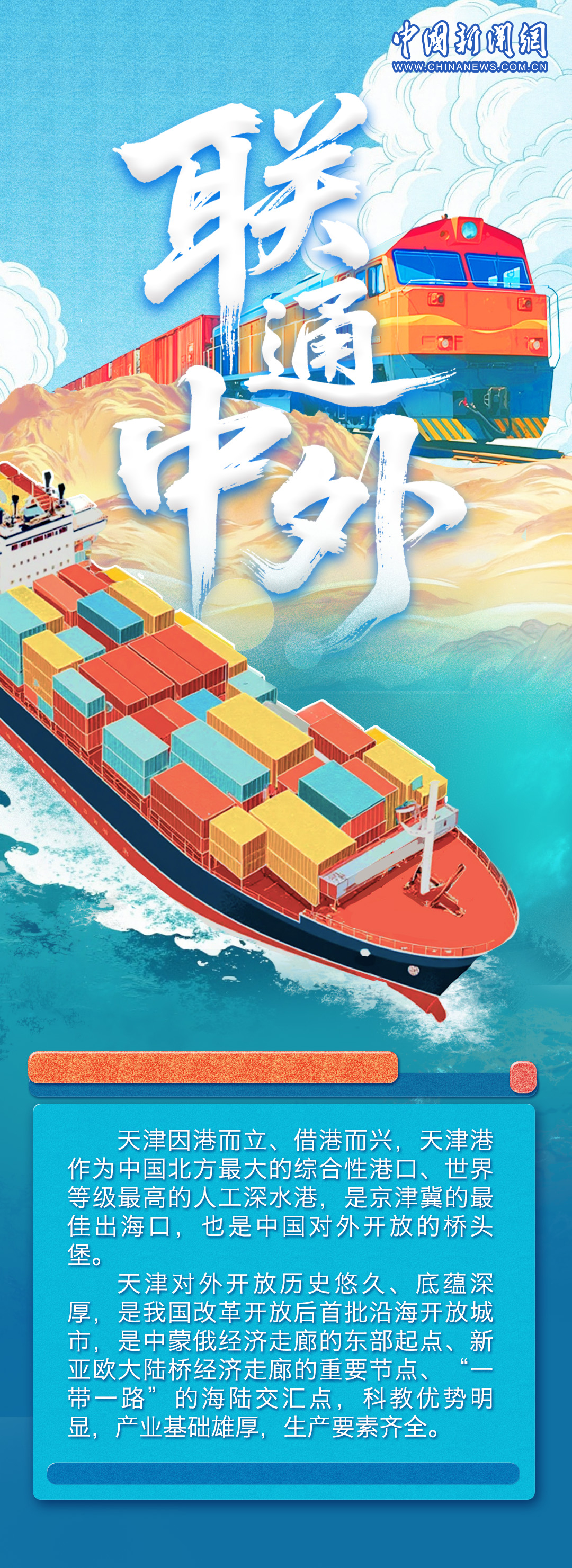 天津文化底蘊(yùn)厚重,有著悠久的商業(yè)文化和航運(yùn)文化,作為中國首批沿海開放城市,依港而生、向海而生。上合組織峰會(huì)將于8月31日至9月1日在天津舉辦,上合進(jìn)入“天津時(shí)間”,世界期待“上合智慧”。一組海報(bào),帶你領(lǐng)略天津的開放風(fēng)采與澎湃動(dòng)能。