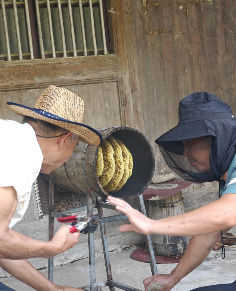 臺州仙居縣林坑村,蜂農(nóng)張建平的蜂蜜收割,吸引了不少人駐足觀賞。