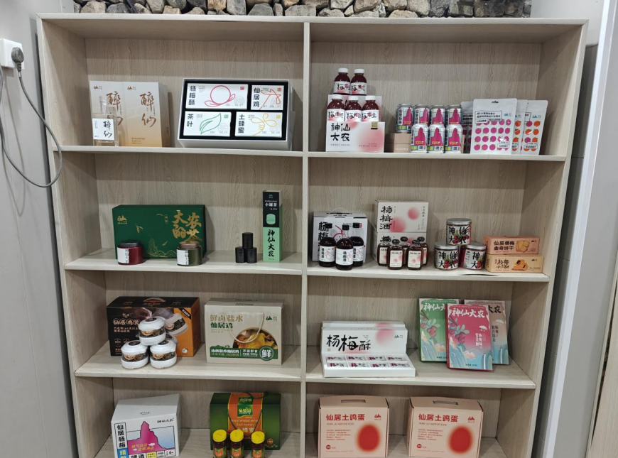 在不遠處的“蜜蜂工坊”小屋,墻面貼的“蜂富林坑”四字格外醒目。土蜂蜜、土雞蛋、楊梅酒、茶葉等特色農(nóng)產(chǎn)品被擺得整整齊齊。