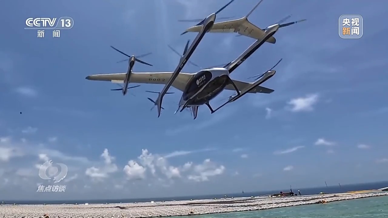 這天,一架兩噸重的電動垂直起降航空器搭載著水果和藥品,從深圳市區(qū)起飛,歷經(jīng)58分鐘的跨海域飛行,抵達距深圳海岸線150公里的海上油氣平臺,為平臺工作人員送去物資。