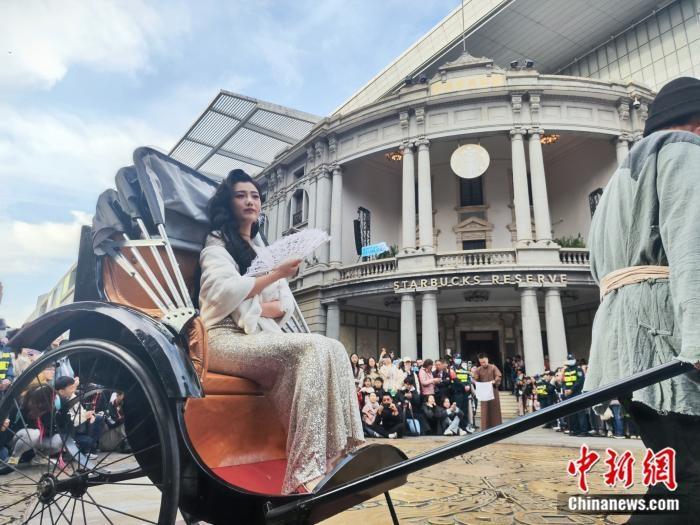 伴隨著“玫瑰玫瑰我愛(ài)你”的旋律,“陳白露”執(zhí)扇從歷史深處走來(lái),黃包車(chē)夫、油頭小生、可憐孤女等角色次第登場(chǎng),觀眾時(shí)而為劇情揪心,時(shí)而因互動(dòng)發(fā)笑,不經(jīng)意間就成了“百年前天津往事”的參與者。