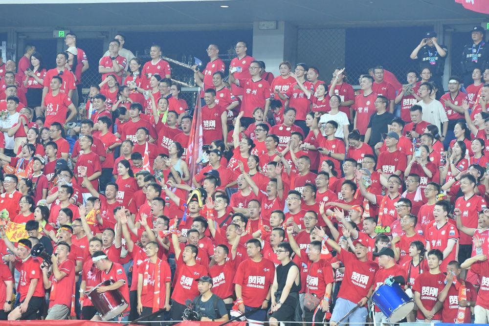 2025江蘇省城市足球聯(lián)賽第六輪比賽,常州隊(duì)球迷為球隊(duì)加油助威。新華社發(fā)(劉臻睿攝)
