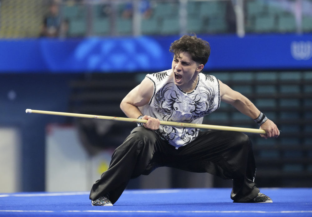 8月9日,馬來西亞選手陳昌敏在南拳比賽中。最終,她獲得冠軍。新華社記者 徐速繪 攝