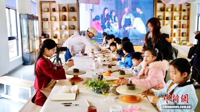 黃彬彬帶領團隊在豬圈改造的窯文化館上陶藝課。受訪者供圖