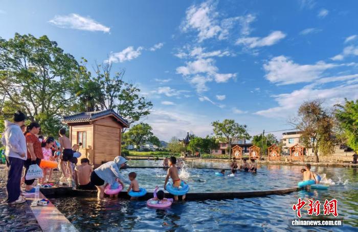 位于福建省清流縣李家鄉(xiāng)鮮水村的“冷泉小鎮(zhèn)”景區(qū)游人如織。不少村民推著手推車在景區(qū)穿梭售賣特色零食,與水池中人們的嬉戲畫(huà)面相映成趣,構(gòu)成一幅動(dòng)靜相宜、生活氣息濃郁的民俗畫(huà)卷。