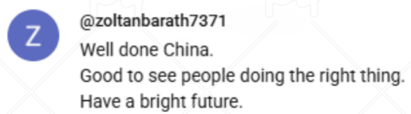 網(wǎng)友@zoltanbarath7371稱贊道,“干得好,中國(guó)。很高興看到人們?cè)谧稣_的事情。祝愿中國(guó)未來(lái)一片光明?!?/p>