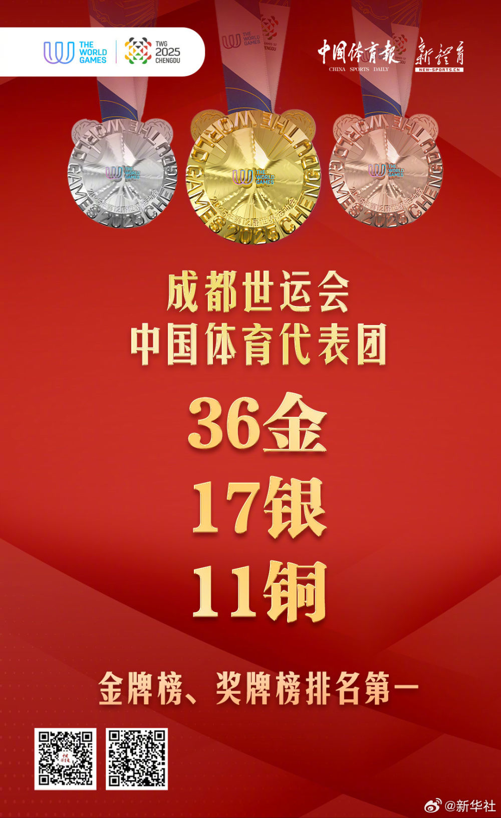 中國(guó)體育代表團(tuán)位居金牌、獎(jiǎng)牌榜首位!為運(yùn)動(dòng)員們點(diǎn)贊!