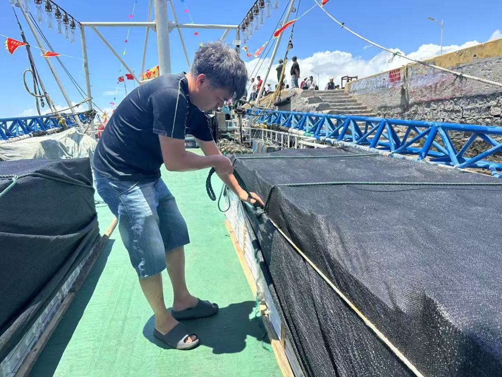8月16日上午,閩惠漁00177號(hào)船長(zhǎng)陳聰莆進(jìn)行開漁前的最后準(zhǔn)備工作。新華社記者 龐夢(mèng)霞 攝