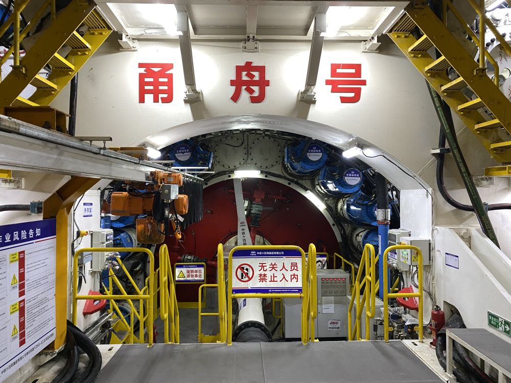 自2024年5月“甬舟號”盾構(gòu)機始發(fā)以來,目前已掘進近2400米,深度位于海平面下約65米處。今年5月29日,工程迎來一個重要節(jié)點——盾構(gòu)機由陸域段全面進入海域段施工。