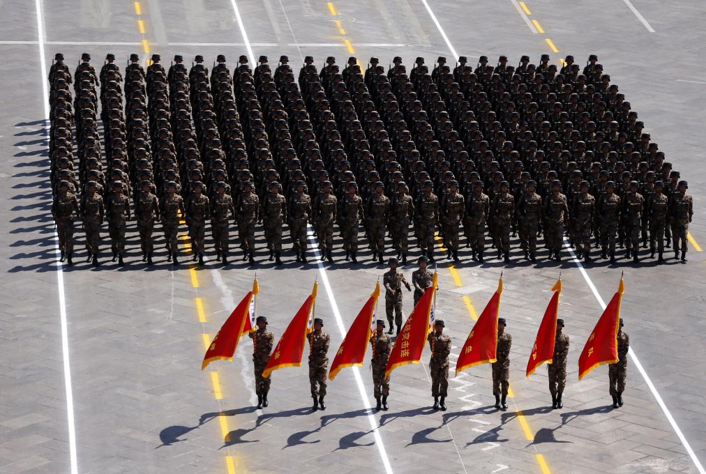 2015年9月3日,中國人民抗日戰(zhàn)爭暨世界反法西斯戰(zhàn)爭勝利70周年紀念大會在北京隆重舉行。這是“平型關大戰(zhàn)突擊連”英模部隊方隊接受檢閱。新華社記者 費茂華 攝