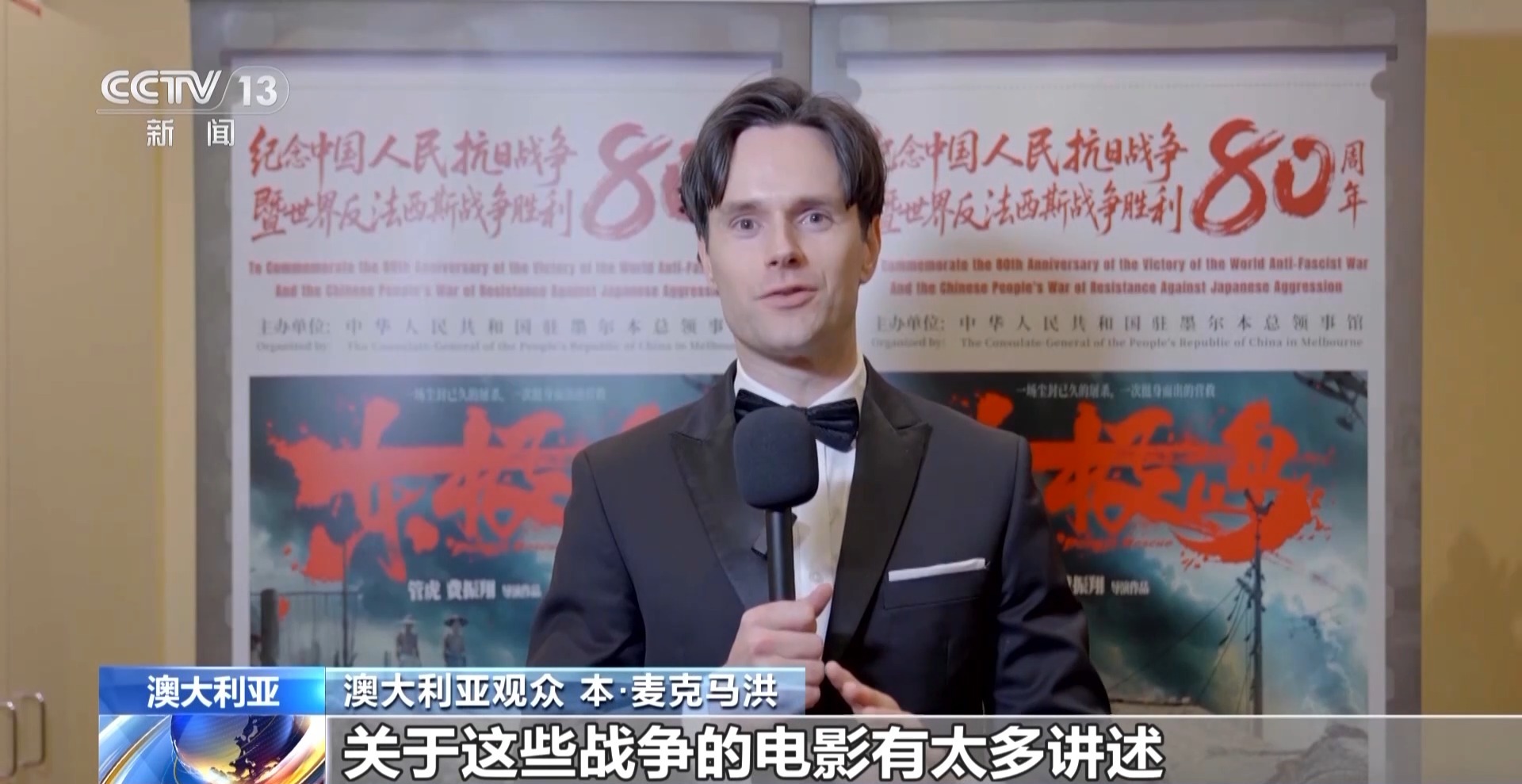 澳大利亞觀眾 本·麥克馬洪:關(guān)于這些戰(zhàn)爭的電影有太多講述,尤其是在澳大利亞。我們聽到的大多是歐洲視角下的故事,我之前對中國的抗戰(zhàn)歷史不太了解。