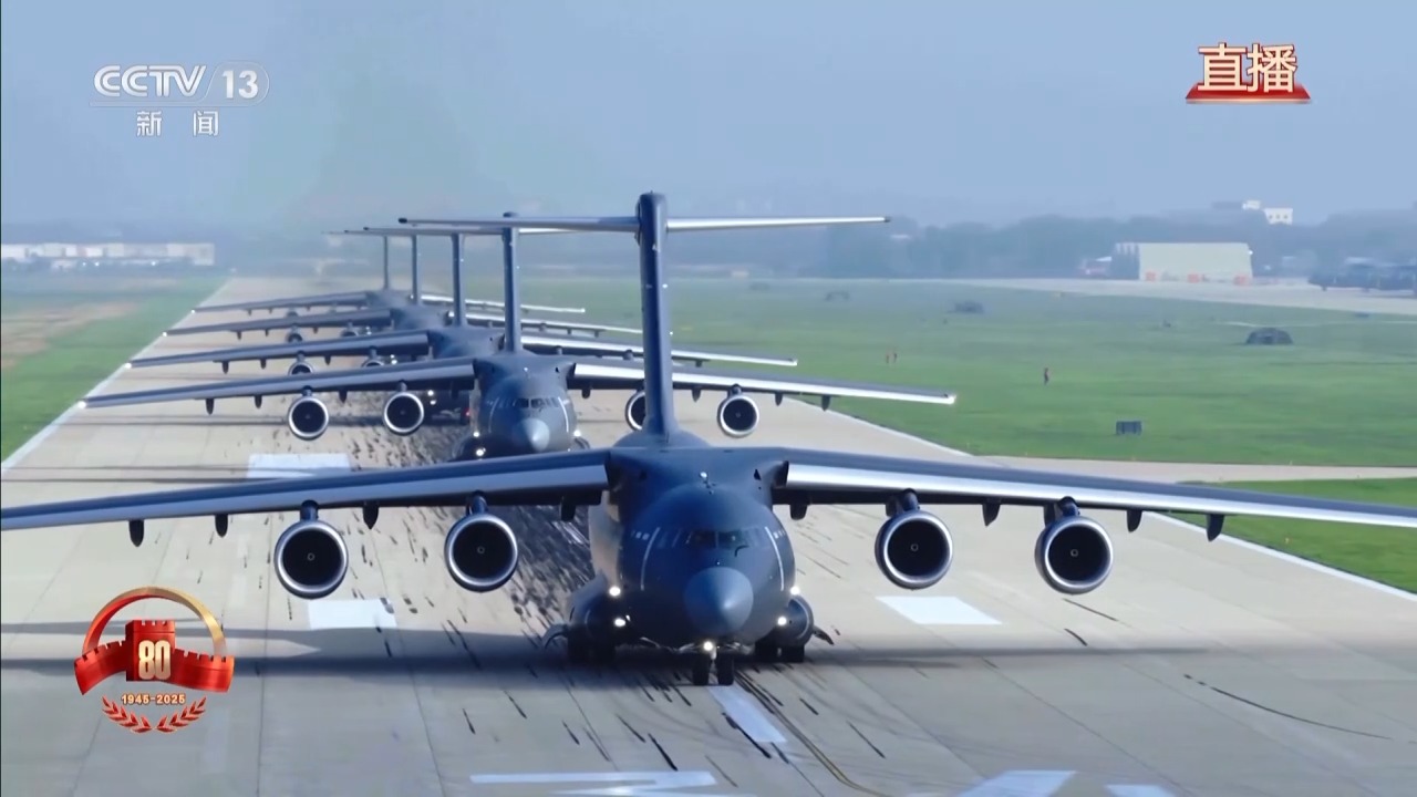空中梯隊(duì)的戰(zhàn)機(jī)從首都周邊多個(gè)機(jī)場陸續(xù)起飛,將飛越天安門廣場,光榮地接受檢閱。