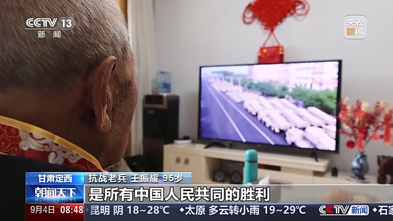 抗戰(zhàn)老兵 王振耀:抗日戰(zhàn)爭(zhēng)的勝利是所有中國(guó)人共同的勝利,我們犧牲了多少同志,才贏得了民族的獨(dú)立和偉大的勝利。這次閱兵看到了祖國(guó)的富強(qiáng),人民軍隊(duì)的強(qiáng)大,武器的先進(jìn),軍隊(duì)精神得到了很好的傳承。