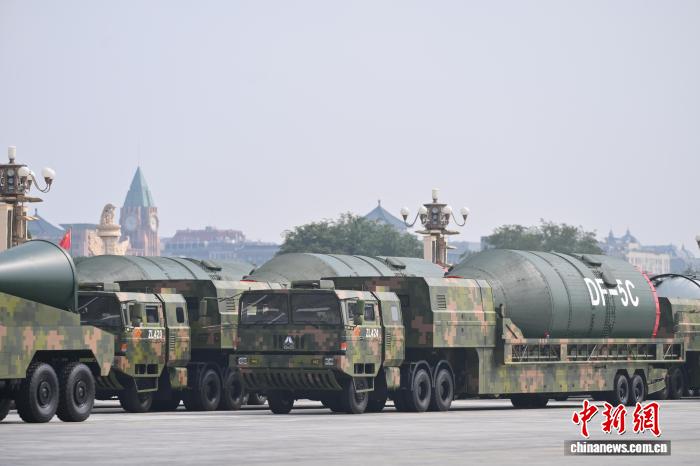9月3日,紀(jì)念中國人民抗日戰(zhàn)爭暨世界反法西斯戰(zhàn)爭勝利80周年大會在北京隆重舉行。圖為核導(dǎo)彈第二方隊“東風(fēng)-5C”液體洲際戰(zhàn)略核導(dǎo)彈駛過天安門廣場。 中新網(wǎng)記者 趙文宇 攝