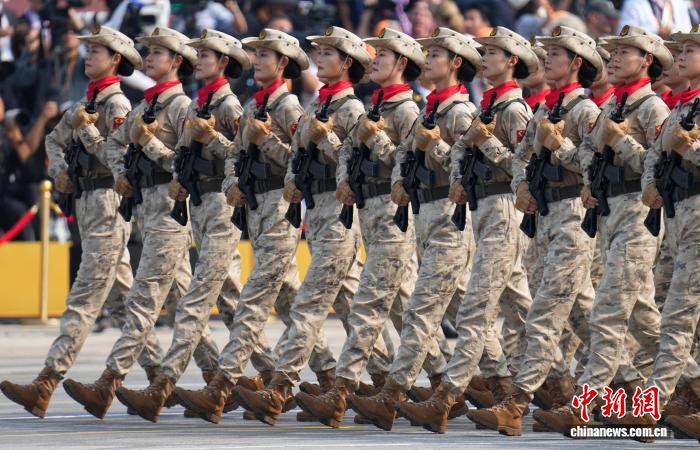 9月3日,紀(jì)念中國人民抗日戰(zhàn)爭暨世界反法西斯戰(zhàn)爭勝利80周年大會在北京隆重舉行。圖為民兵方隊接受檢閱。該方隊全部由女民兵組成,這是民兵首次亮相以紀(jì)念抗戰(zhàn)勝利為主題的閱兵活動。 中新網(wǎng)記者 趙文宇 攝