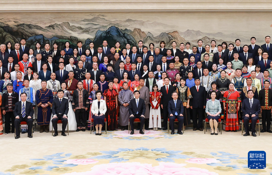 9月5日,中共中央政治局常委、全國政協(xié)主席王滬寧在北京會(huì)見全國少數(shù)民族參觀團(tuán)。新華社記者 王曄 攝