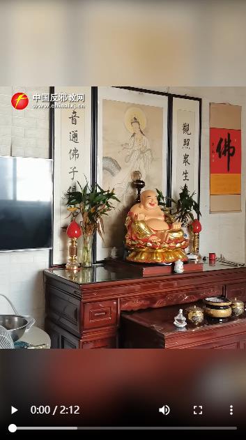 涉案“一貫道”組織某“佛堂”擺放,供奉彌勒佛和濟(jì)公等,彌勒佛后上方擺放有“母燈”,指代“無(wú)生老母”