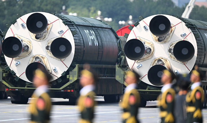↑9月3日,紀念中國人民抗日戰(zhàn)爭暨世界反法西斯戰(zhàn)爭勝利80周年大會在北京隆重舉行。這是核導(dǎo)彈第二方隊接受檢閱。