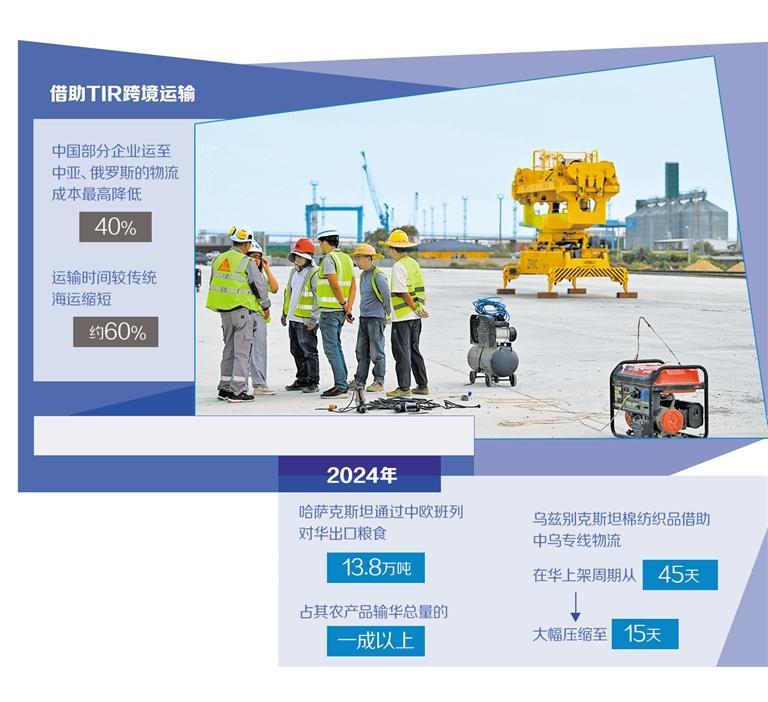 在區(qū)域產(chǎn)業(yè)鏈協(xié)同方面,TIR運輸也為企業(yè)與成員國帶來了實實在在的收益:中國部分企業(yè)借助TIR跨境運輸,將運至中亞、俄羅斯的物流成本最高降低40%,運輸時間較傳統(tǒng)海運縮短約60%;2024年,哈薩克斯坦通過中歐班列對華出口糧食13.8萬噸,占其農產(chǎn)品輸華總量的一成以上;烏茲別克斯坦的棉紡織品借助中烏專線物流,在華上架周期從45天大幅壓縮至15天。在產(chǎn)業(yè)鏈協(xié)同層面,汽車零部件、電子元件等中間品成了跨境電商新增長點,標志著區(qū)域合作正從商品貿易向產(chǎn)業(yè)鏈深度融合升級,通過降成本、提效率、拓品類,實現(xiàn)了上下游產(chǎn)業(yè)鏈的互利共贏。