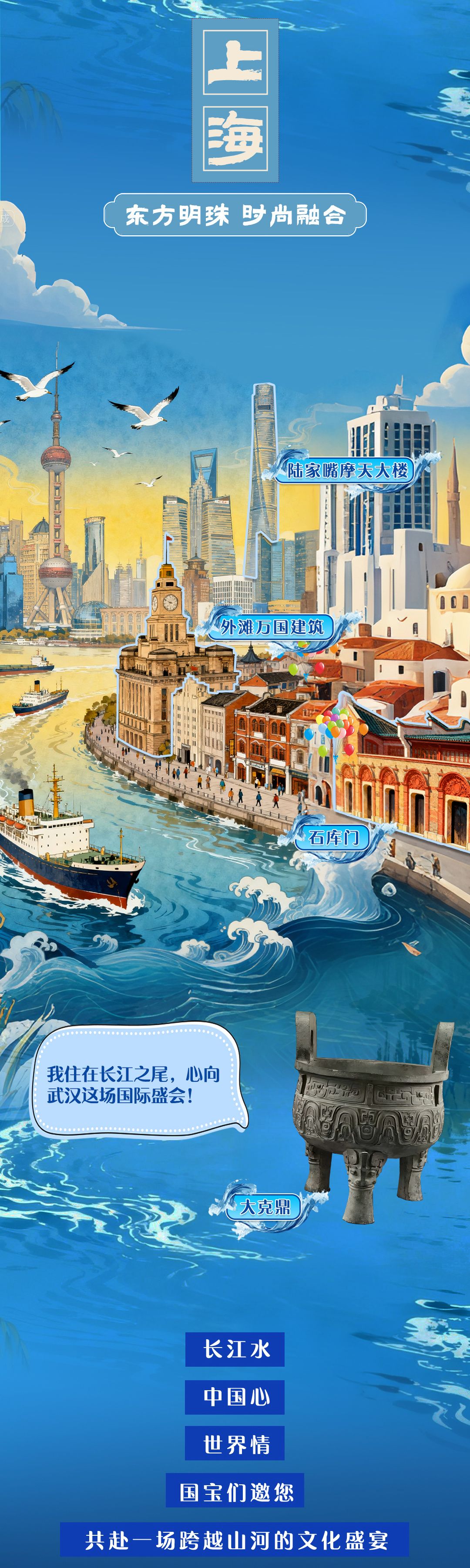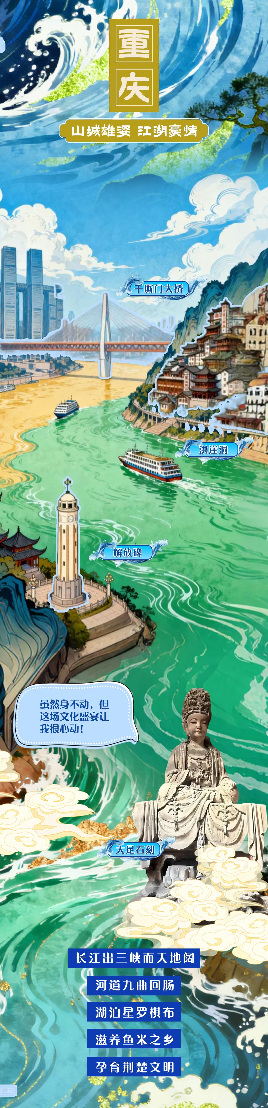 6300余公里奔騰,5400多米跌宕。長(zhǎng)江,是一條流淌著詩意的文明長(zhǎng)河,每一朵浪花都是文化的結(jié)晶。