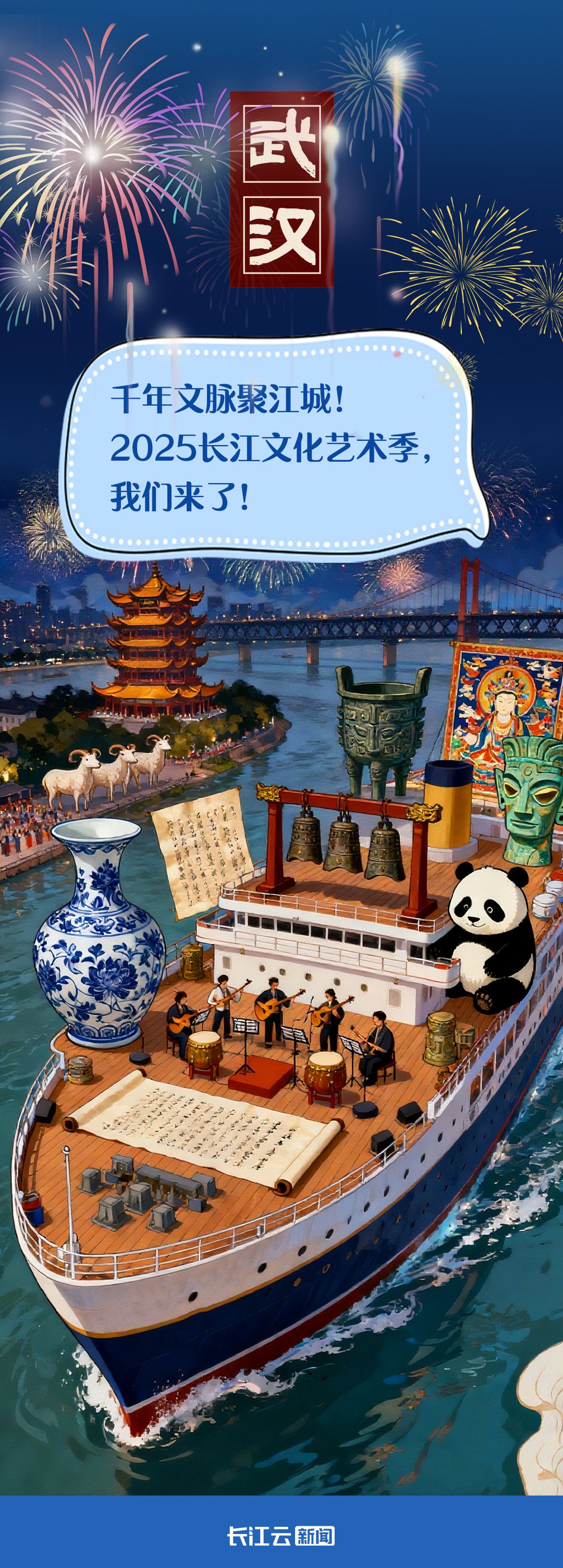 溯流而上,聽曾侯乙編鐘奏響千年清音,看三星堆神樹閃耀古蜀智慧;與熊貓漫步蜀地竹林……今天(9月12日),2025長(zhǎng)江文化藝術(shù)季即將在武漢盛大啟幕,讓我們跟著沿江各地的國(guó)寶一起共赴這場(chǎng)跨越山河的藝術(shù)盛宴!