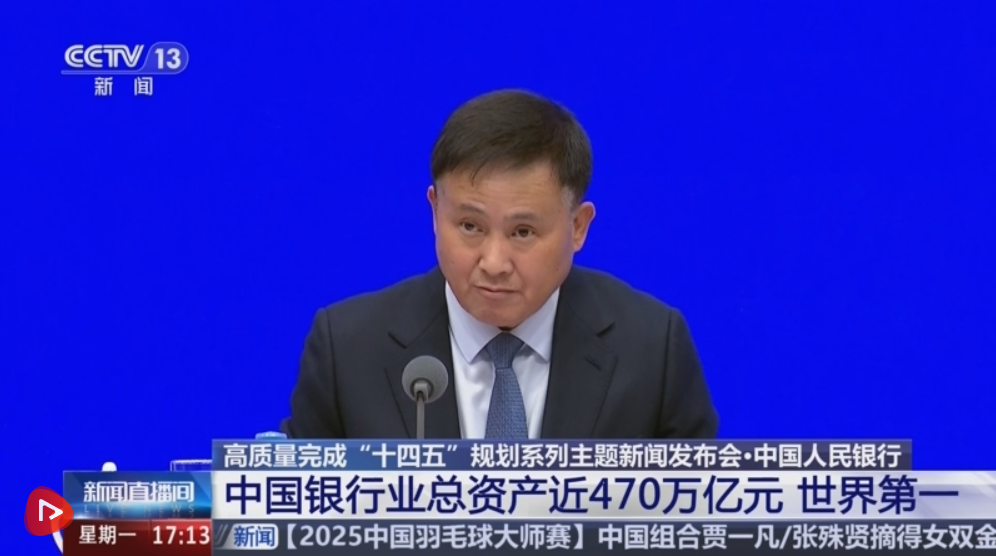 國務(wù)院新聞辦公室9月22日舉行“高質(zhì)量完成“十四五”規(guī)劃”系列主題新聞發(fā)布會,中國人民銀行,金融監(jiān)管總局,中國證監(jiān)會,國家外匯局等部門負(fù)責(zé)人介紹“十四五”時期金融業(yè)發(fā)展成就。 中國人民銀行行長潘功勝介紹,“十四五”期間,中國銀行業(yè)總資產(chǎn)近470萬億元,位居世界第一。