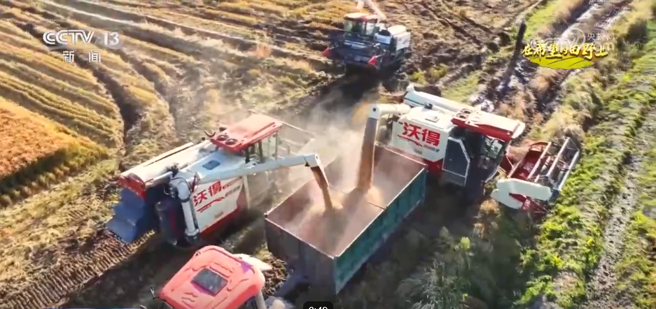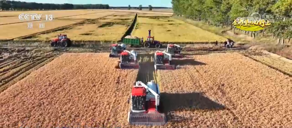 在綏濱縣新富鄉(xiāng)的稻田里,多臺(tái)現(xiàn)代化收割機(jī)正在緊張作業(yè)。伴隨著機(jī)器的轟鳴聲,一排排稻稈被快速卷入收割機(jī),經(jīng)過脫粒、篩選等工序,飽滿的稻谷源源不斷地從出糧口傾瀉而出,裝入一旁等候的運(yùn)輸車輛中。