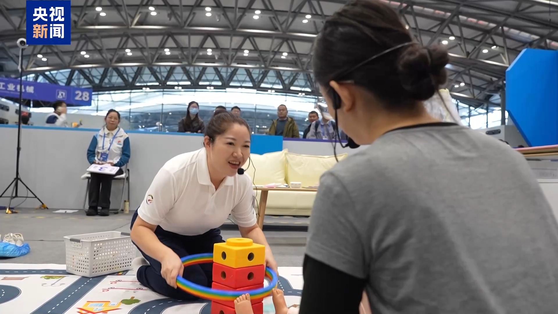 賽場上,一個個格子間按照真實居家場景布置,選手們按照流程,完成從上門拜訪、嬰兒互動、游戲設計、家長交流等系列服務工作。記者注意到,這次比賽創(chuàng)新引入會哭鬧的智能化模擬嬰兒,選手抱姿不對、饑餓都會有數(shù)據反饋,考驗選手的回應性照顧能力,同時邀請了一些嬰幼兒家長進行配合互動。
