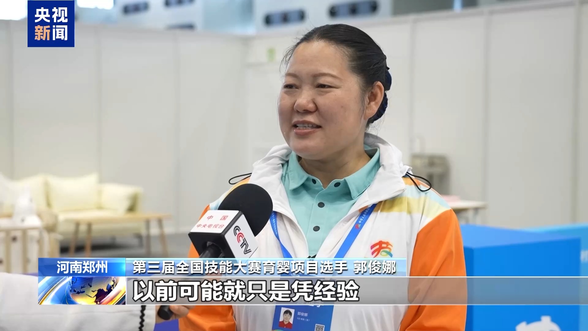 郭俊娜是一名有著近20年經驗的“金牌月嫂”,今年第一次參加國家級技能比賽。她告訴記者,一次次實操打磨,自己也得到了更大提升。