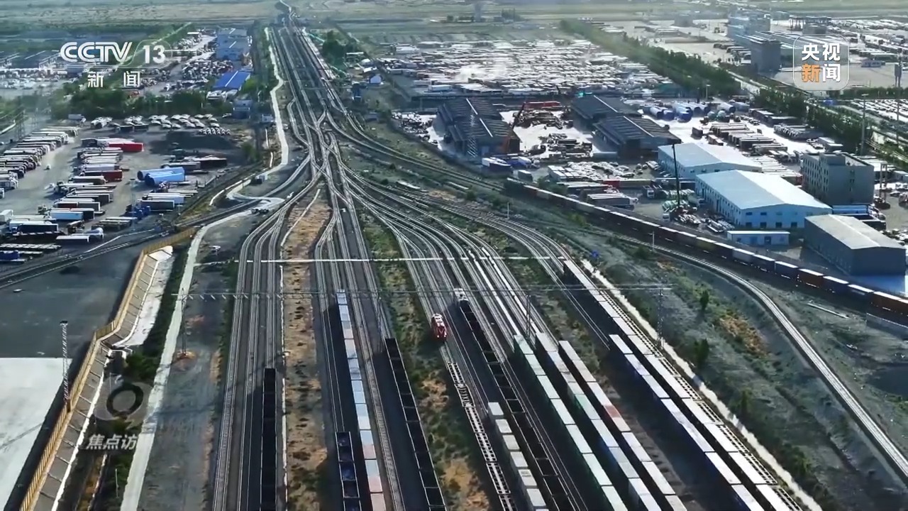 今天的新疆,早已不是封閉偏遠(yuǎn)的西北邊陲,而是向西開(kāi)放的前沿和服務(wù)國(guó)家新發(fā)展格局的戰(zhàn)略支點(diǎn),它擁有5700公里邊境線,19個(gè)對(duì)外開(kāi)放的口岸。在邊境口岸城市霍爾果斯,如今平均一小時(shí)就有一列滿(mǎn)載的列車(chē)出入境。從2016年,第一列中歐班列過(guò)境霍爾果斯站,不到10年,已有超過(guò)47000列中歐(中亞)班列經(jīng)過(guò)。