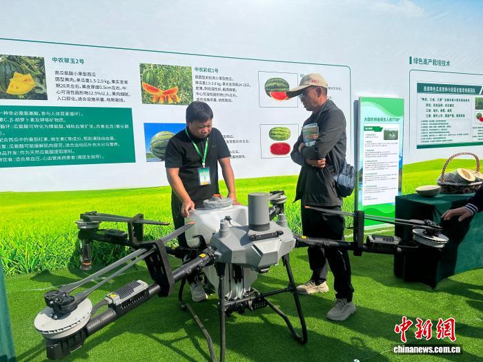 9月23日,新疆慶祝“中國(guó)農(nóng)民豐收節(jié)”活動(dòng)在昌吉州舉行,圖為現(xiàn)場(chǎng)展出的農(nóng)業(yè)植保無(wú)人機(jī)?!∽蟮さ?攝