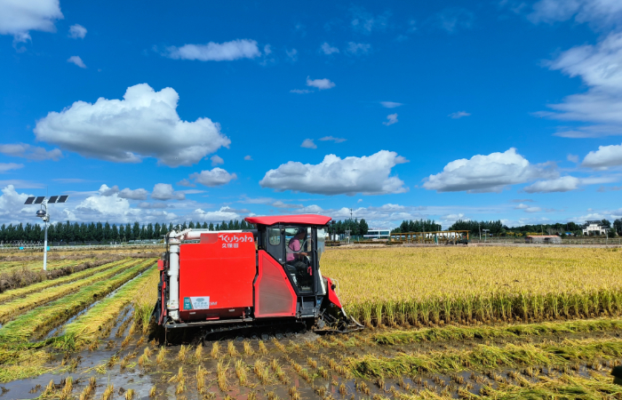 新華網(wǎng)呼和浩特9月26日電(李倩)金秋時(shí)節(jié),內(nèi)蒙古興安盟扎賚特旗萬頃稻浪翻涌,大型聯(lián)合收割機(jī)的轟鳴聲劃破田間寧靜,全旗正式迎來2025年水稻青糧收割“第一鐮”。