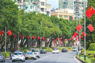 為熱烈慶祝中華人民共和國成立76周年,香港和澳門街頭裝扮一新,處處洋溢著喜慶的節(jié)日氣氛。五星紅旗與港澳區(qū)旗迎風飄揚,祝福標語和慶祝海報在街頭巷尾隨處可見。港澳特區(qū)政府與社會各界攜手推出了一系列豐富多彩的慶祝活動和優(yōu)惠措施。