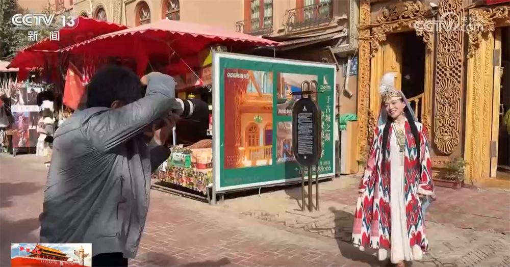 在新疆喀什古城景區(qū),這幾天每天都舉行開城儀式,迎接來(lái)自全國(guó)各地的游客。古城街巷里更是掛滿了國(guó)旗,讓人們感受到濃濃的國(guó)慶氛圍。景區(qū)人氣火爆也帶來(lái)商業(yè)機(jī)遇,身著民族傳統(tǒng)服飾的游客隨處可見,旅拍攝影師則在一旁記錄。
