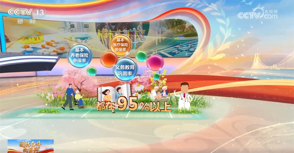 這五年,經(jīng)濟發(fā)展、科技進步的成果實打實地轉化為群眾的獲得感和幸福感。我國已建成全球規(guī)模最大的教育體系、社會保障體系、醫(yī)療衛(wèi)生體系,義務教育鞏固率和基本養(yǎng)老保險、基本醫(yī)療保險參保率都在95%以上。