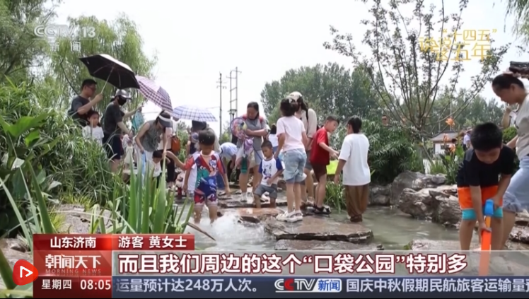 游客黃女士說,山更青了、水更美了,祖國處處的山水都很美。周邊的口袋公園特別多,方便他們鍛煉身體對老年人很有幫助。