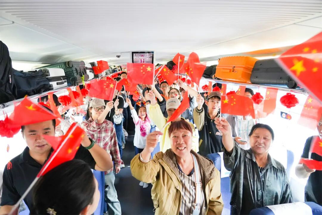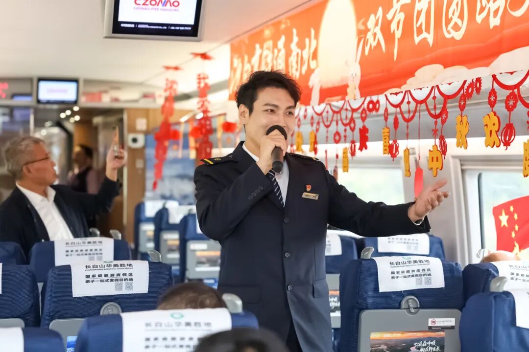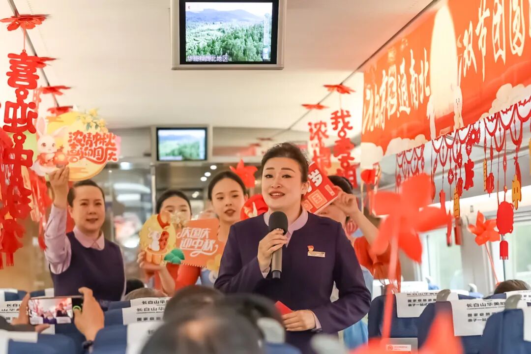 沈佳高鐵沈白段開(kāi)通運(yùn)營(yíng)后,迎來(lái)第一個(gè)國(guó)慶中秋假期。長(zhǎng)春客運(yùn)段在長(zhǎng)春至青島北的G3565次列車(chē)上舉辦“‘我的鐵路風(fēng)景’——沈白高鐵通南北 雙節(jié)團(tuán)圓路更捷”列車(chē)聯(lián)歡活動(dòng)。