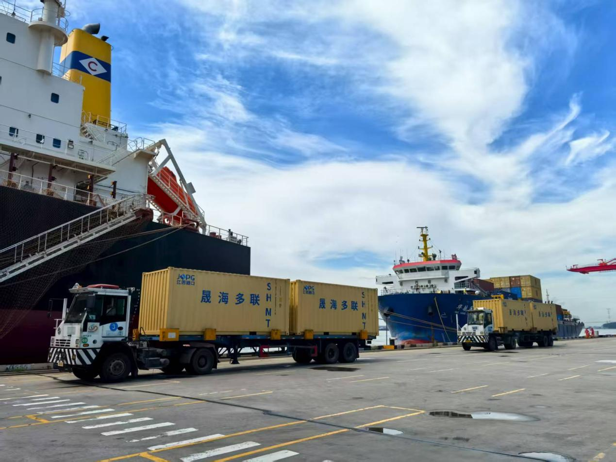 “傳統(tǒng)車皮運(yùn)輸需多次倒裝,損耗率高、成本大。我們創(chuàng)新采用35噸敞頂箱替代車皮,鐵路直發(fā)龍?zhí)陡酆笸ㄟ^專用吊具直接拆箱裝船,全程貨物不落地、零損耗,每年節(jié)省物流成本近2000萬元?!标珊9究偨?jīng)理管俊俊向記者介紹。