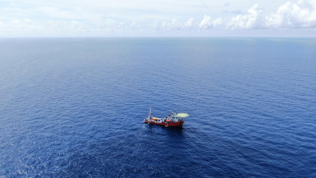 9月18日,南海北部海域,科考船搭載我國自主研發(fā)的“海馬”號深海遙控潛水器(ROV)進(jìn)行“源火”采集。新華社記者 盧漢欣 攝